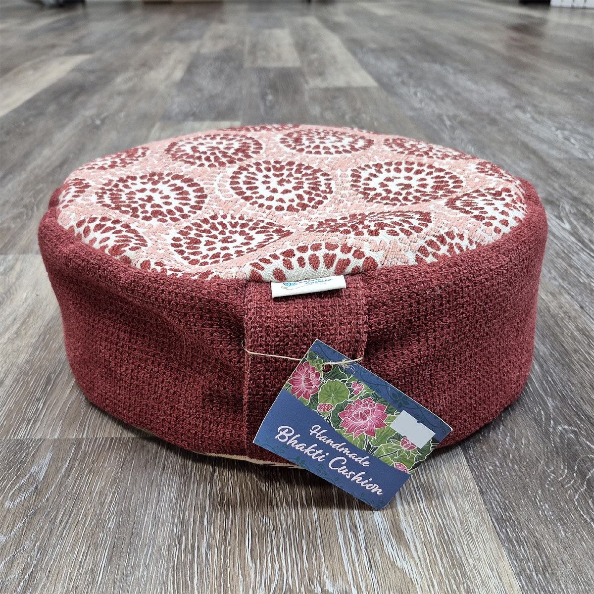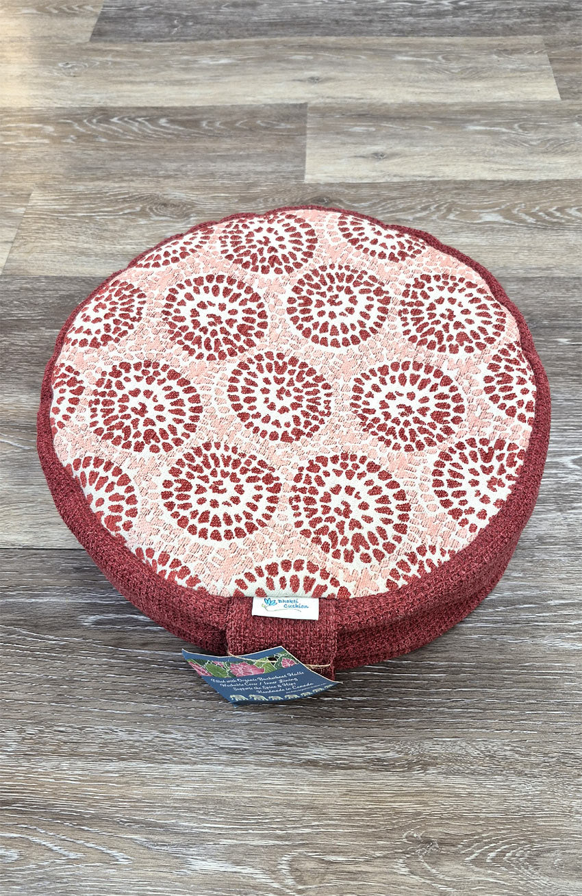 Meditation Cushion ~ Red Flowers Buckwheat Hull Filled